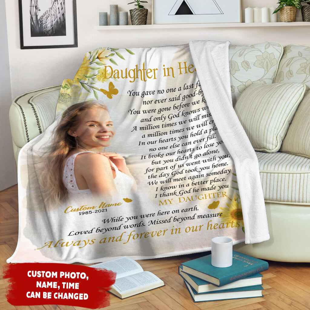Personalized Sunflower Memorial Blanket for Daughter - Daughter in Heaven Blanket - Daughter Remembrance Fleece Blanket Sympathy Gift for Loss of Daughter In Memory of Daughter - JB313