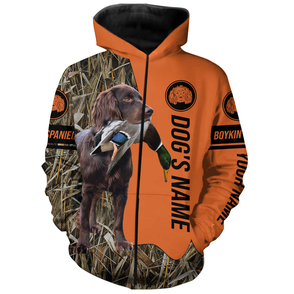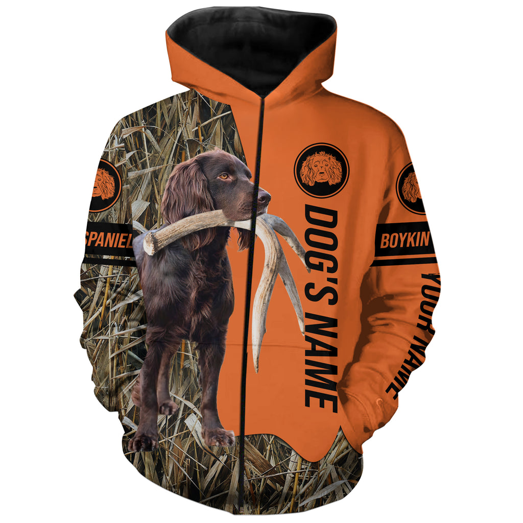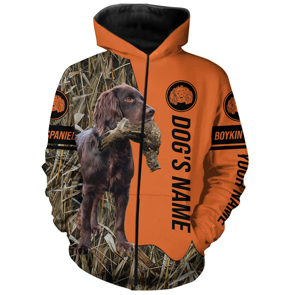 Boykin Spaniel Hunting Dog Customized Name Zip Up Hoodie Shirt for Hunters FSD4084
