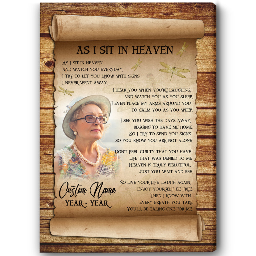 As I Sit in Heaven Personalized Memorial Gifts for Loss of Loved one, Sympathy Canvas for Loss of Father Mother VTQ118