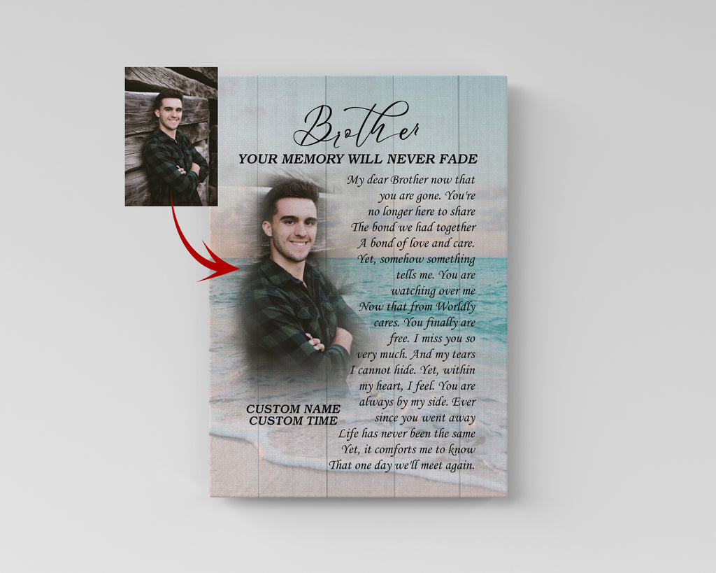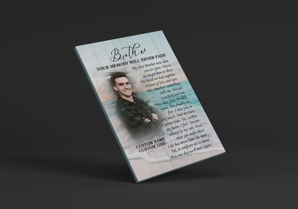Brother Remembrance Personalized Canvas| Your Memory Never Fade| Brother Memorial Gifts, Sympathy Gifts for Loss of Brother, In Memory Bereavement Keepsake, Condolence Gifts| N2371