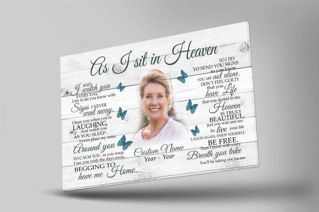 Butterfly Personalized Memorial Canvas for Loss of Loved one, Sympathy Gift for Loss of Mom Dad - As I Sit In Heaven - VTQ128