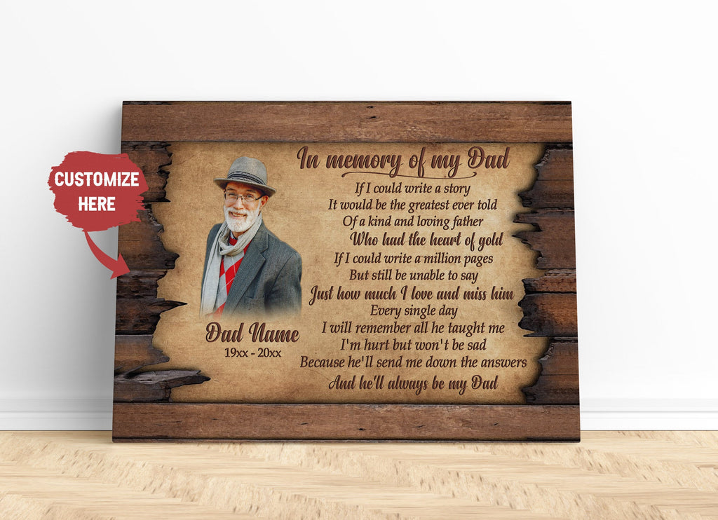 Dad in Memory Personalized Canvas Dad Remembrance on Father's Day, Sympathy Gift for Loss of Father| N2589