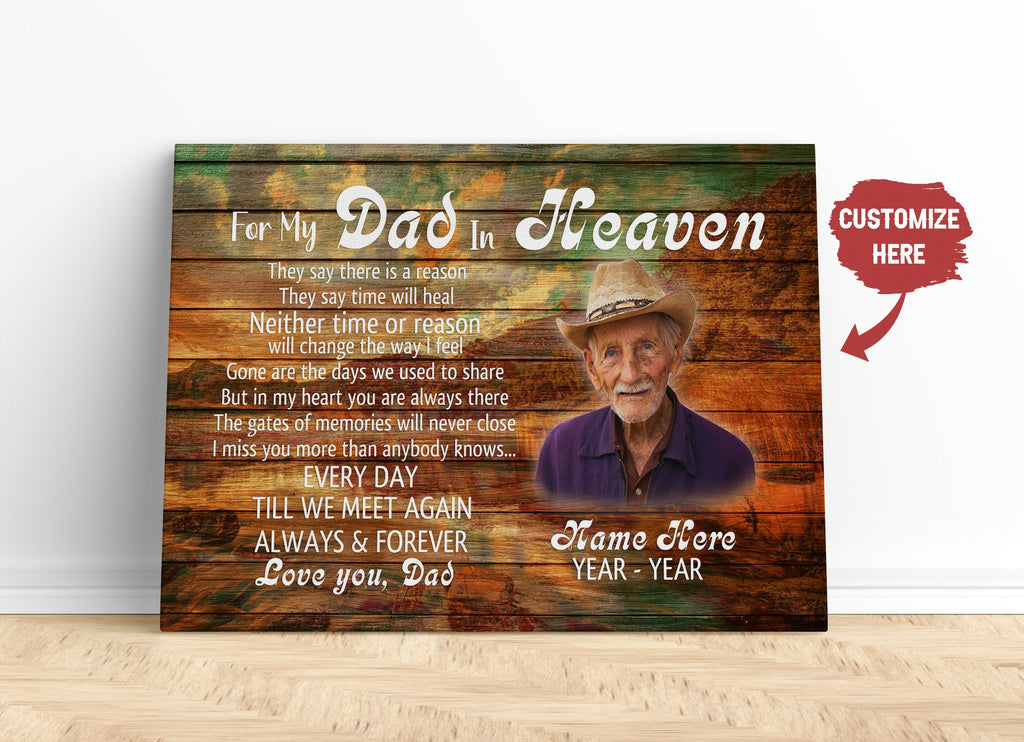 Dad Memorial Canvas Personalized Dad Remembrance Father's Day in Heaven Sympathy Gift Loss of Father| N2585