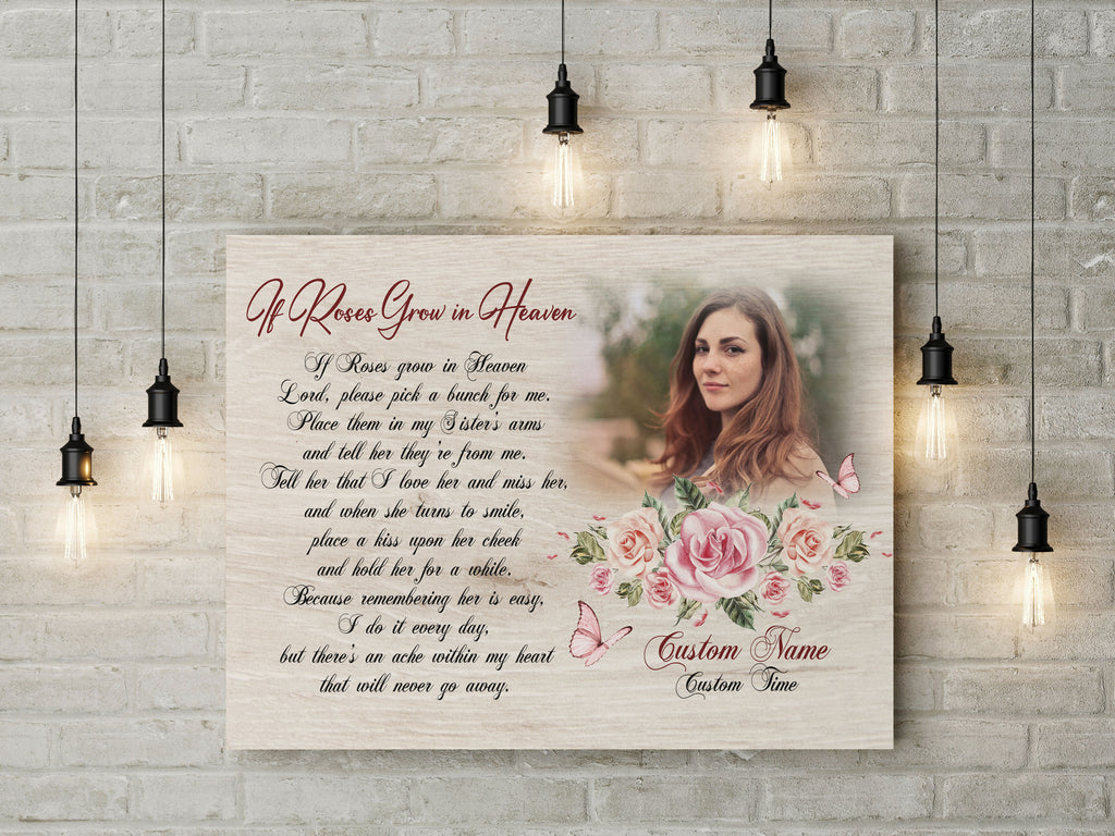 Deepest Keepsake Personalized Memorial Gifts for Loss of Loved one Sympathy Canvas Rose in Heaven VTQ47