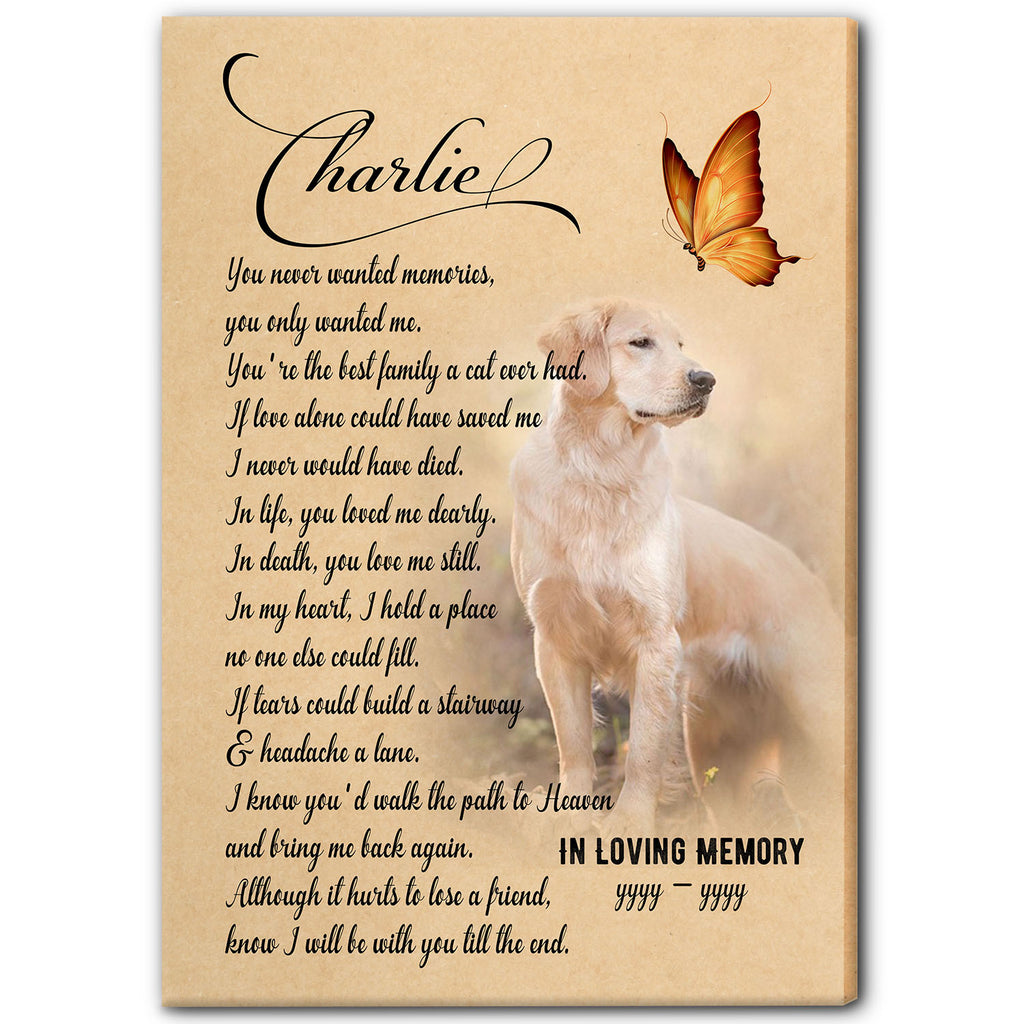 • FOR REMEMBRANCE - Remember your favorite furry friend with this decorative wall art canvas with a custom photo and name on it. Not only it is a sympathy gift for remembering a loved pet who has passed away, but it also brightens up your room with a tasteful design and delivery the loving and blessed message to the little friend. A great way to pay tribute and remember your best friend.