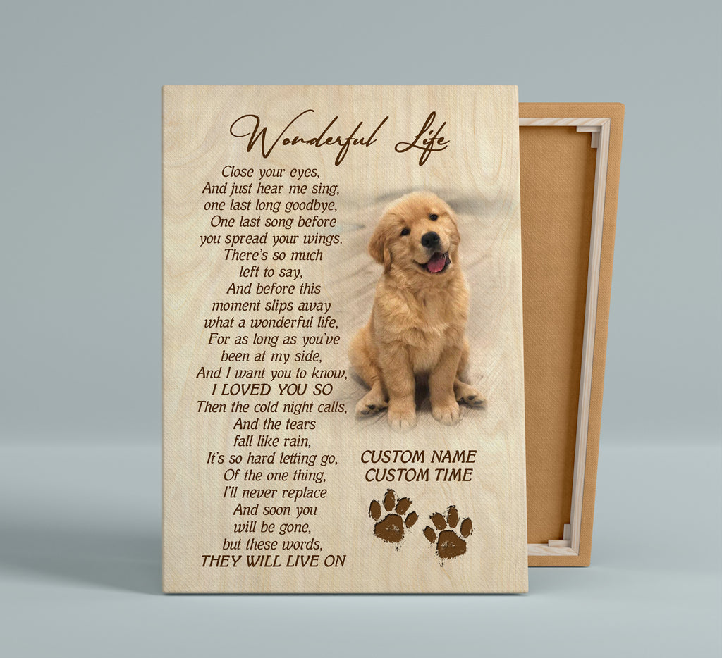 Dog Memorial Canvas| Wonderful Life Custom Dog Memorial Gift, Sympathy Gift for Loss of Dog| JCD811