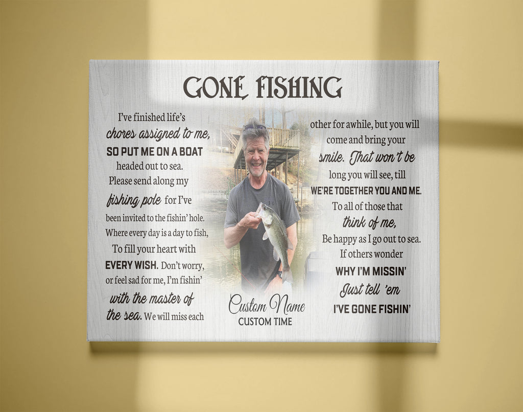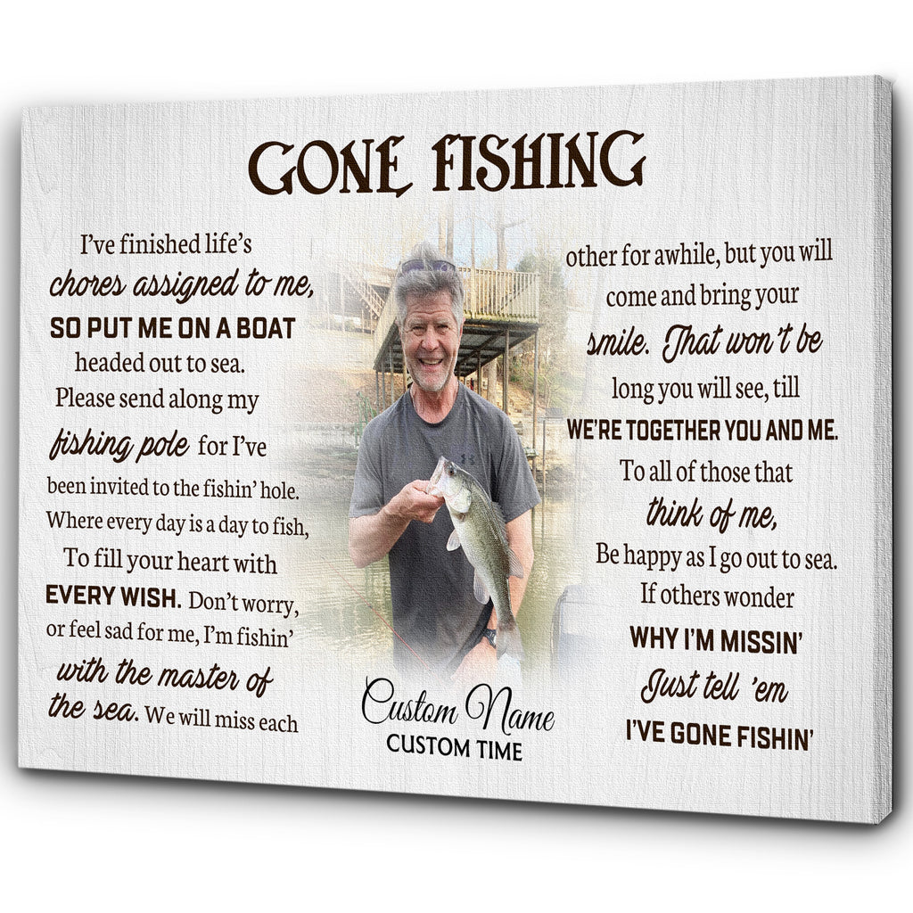 Gone Fishing Memorial Canvas| Custom Fishing Remembrance, Sympathy Gift for Loss of Father Son Fisherman JC873