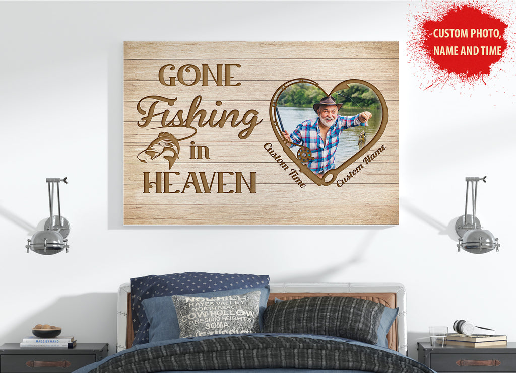 Gone Fishing Memorial Gifts for fishing lover Personalized Sympathy Canvas for loss of loved one VTQ75