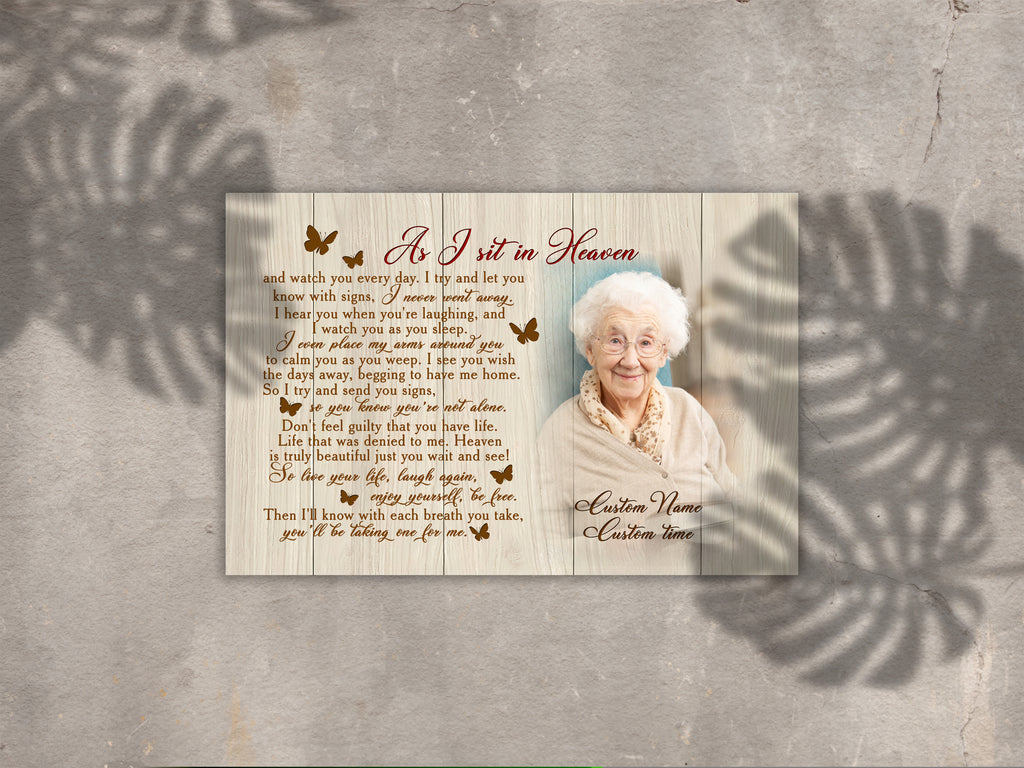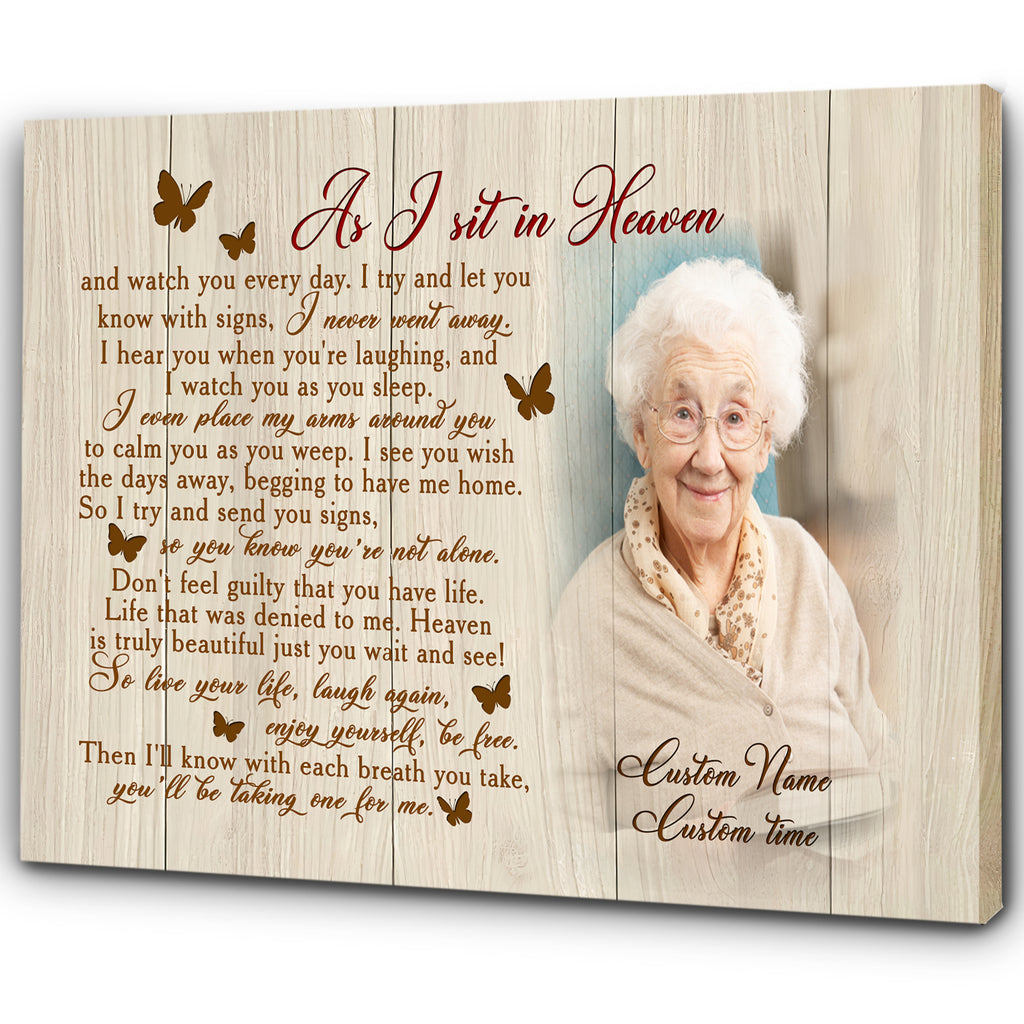 Memorial Canvas| As I Sit in Heaven Butterfly Canvas Personalized Memorial Gift for Loss of Loved One, Family Loss Gift| Bereavement Sympathy Gift| In Loving Memory Wall Art| JC646 Myfihu