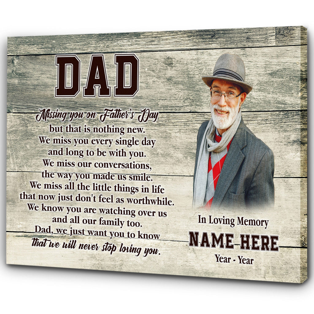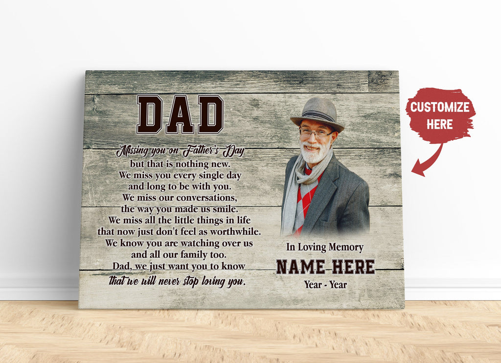 Missing You on Father's Day Dad Memorial Canvas Custom Remembrance Father Sympathy Gift in Heaven| N2584