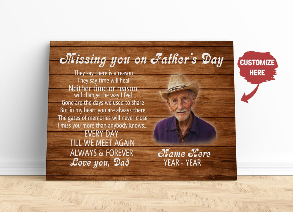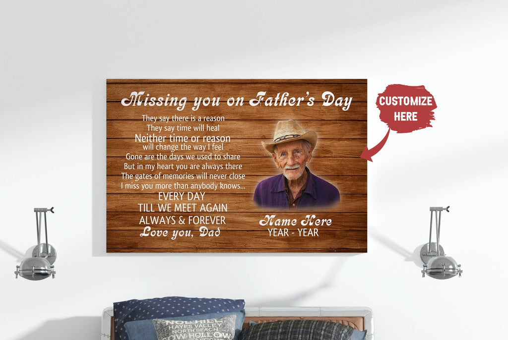 Missing You on Fathers Day Personalized Dad Memorial Canvas Sympathy Gift for Loss of Father in Heaven| N2587