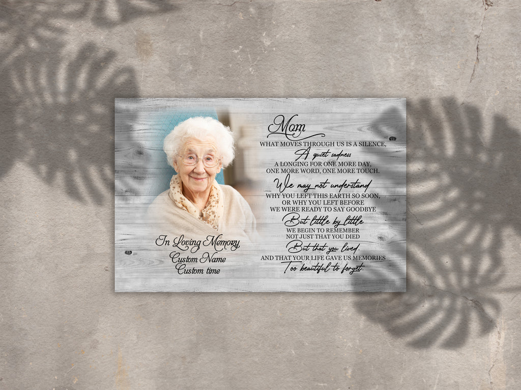 Mom Memorial Canvas| Personalized Photo| Too Beautiful to Forget| Mom Remembrance, In Heaven Mother Memorial| Sympathy Gift, Memorial Gift for Loss of Mother, In Memory of Mom| N2346