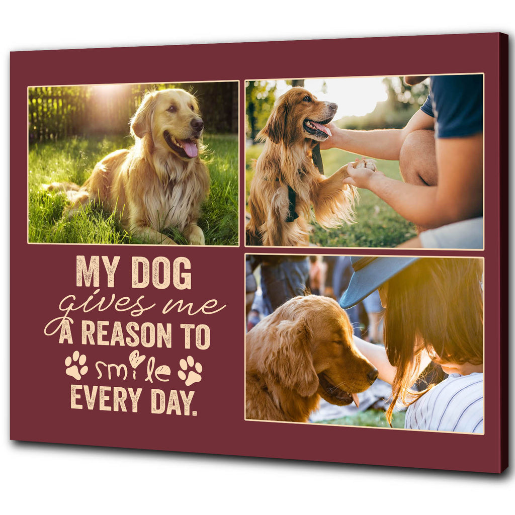 My Dog Gives Me A Reason To Smile Everyday| Custom Dog Photo Collage Canvas| Dog Sign Dog Theme Gift| JCD817