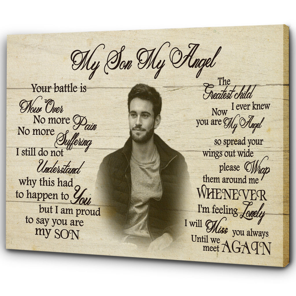 My Son My Angel - Memorial Canvas | Personalized Canvas | Memorial Gift for Loss of Son, Son Remembrance Gift | Deepest Sympathy Gift| Bereavement Condolence Gift| T1060