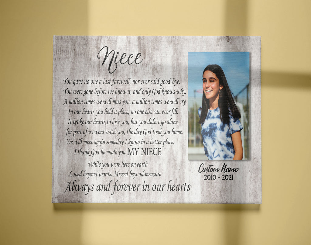 Niece Memorial Canvas - Personalized Memorial Gift Sympathy Gift for Loss of Niece In Loving Memory of Niece Remembrance Canvas Bereavement Condolence Keepsake Gift for Niece - JC753