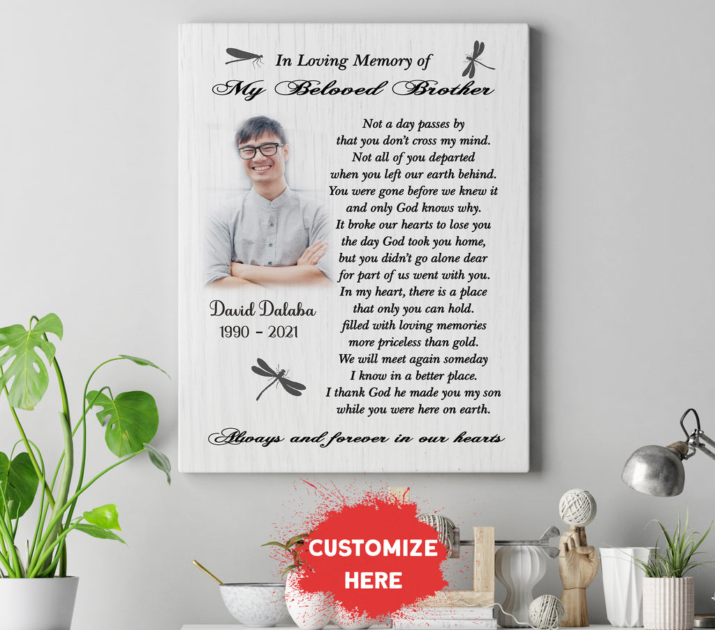 Personalized Brother Memorial Canvas - In Memory of Brother in Heaven Memorial Gift for Loss of Brother Sympathy Gift for Loss of Brother, Brother Remembrance Canvas - JC768