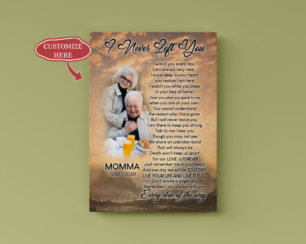 Personalized Canvas I Never Left You Memorial Sympathy Gift for Loss of Loved One Bereavement Keepsake| N2620