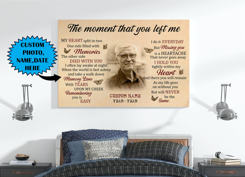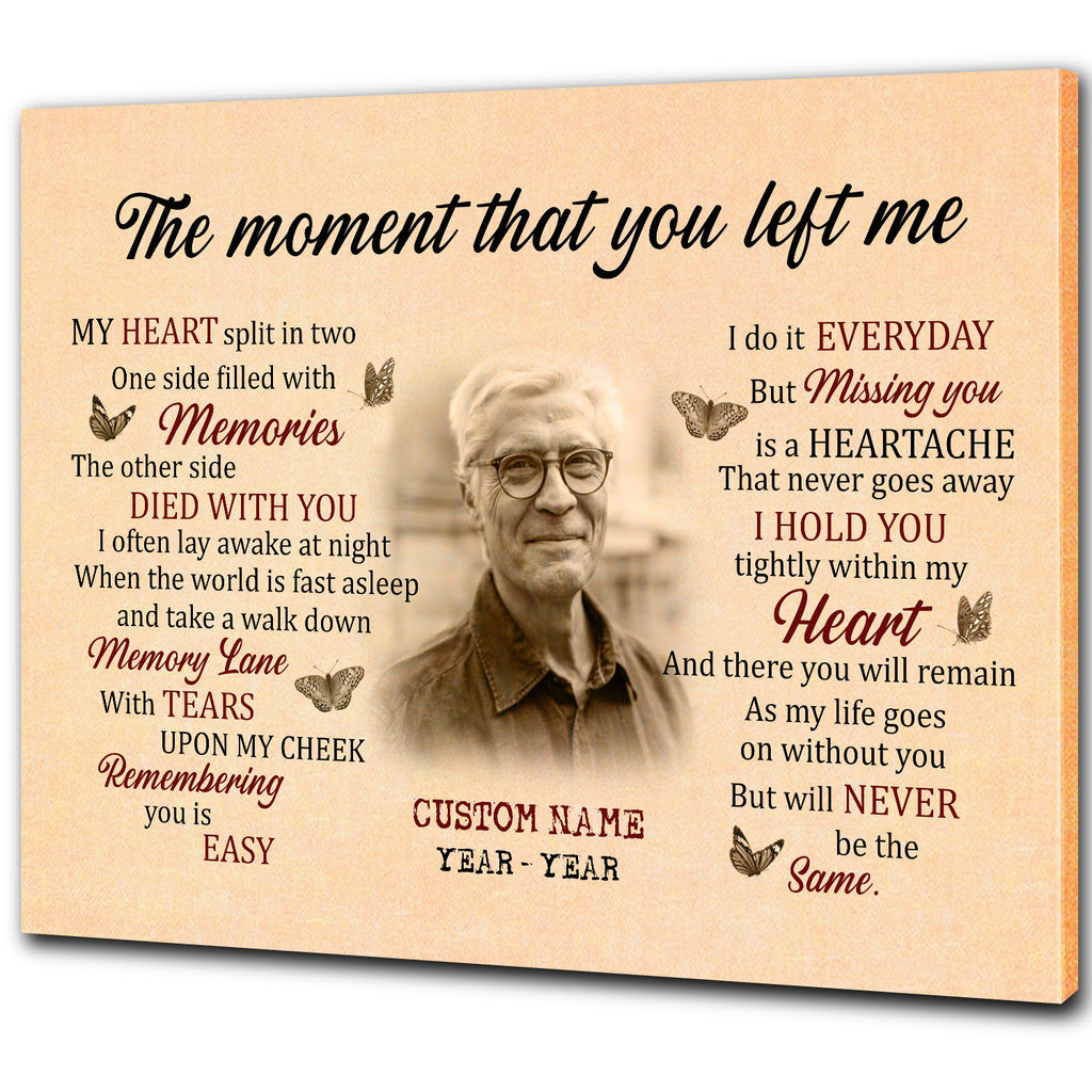 Personalized Memorial Canvas - The Moment You Left Me| Memorial Sympathy Gift for Loss of Father Mother Husband Son in Heaven, Bereavement Gift| In Loving Memory Remembrance| N2438