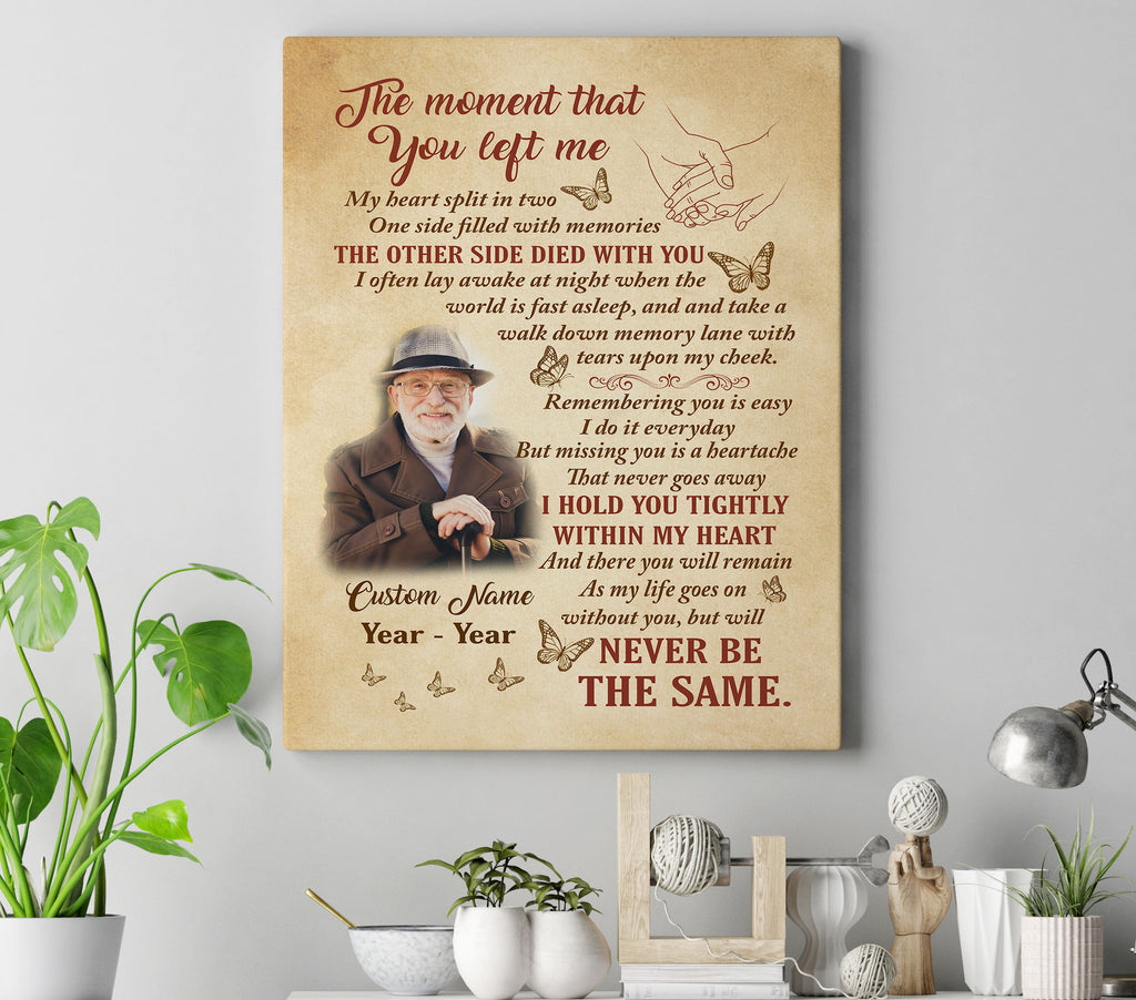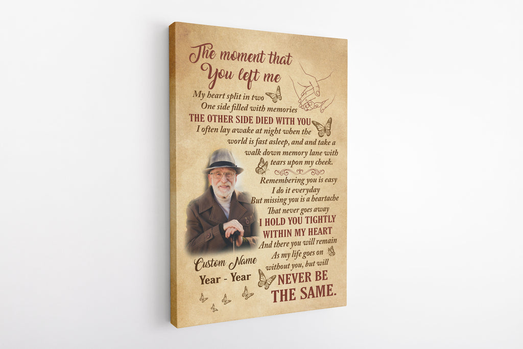 Personalized Memorial Canvas - The Moment You Left Me| Memorial Sympathy Gift for Loss of Father Mother Husband Son in Heaven, Bereavement Gift| In Loving Memory Remembrance| N2439