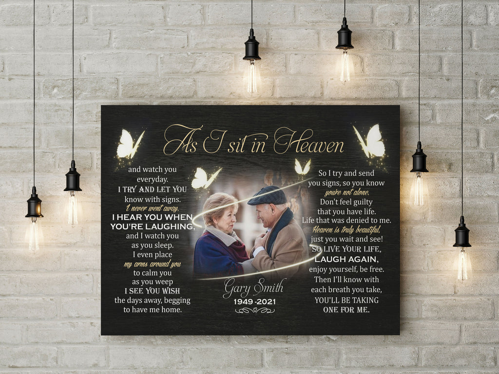Personalized Memorial Gifts| As I Sit In Heaven Canvas Remembrance Canvas for Loss of Father Mother AP802