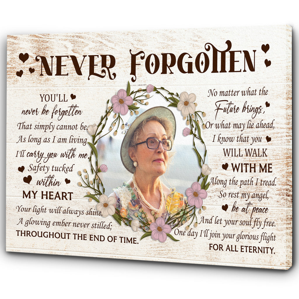 Personalized Memorial Gifts Rememberance Sympathy Canvas for Loss of Loved One Never Forgotten VTQ02