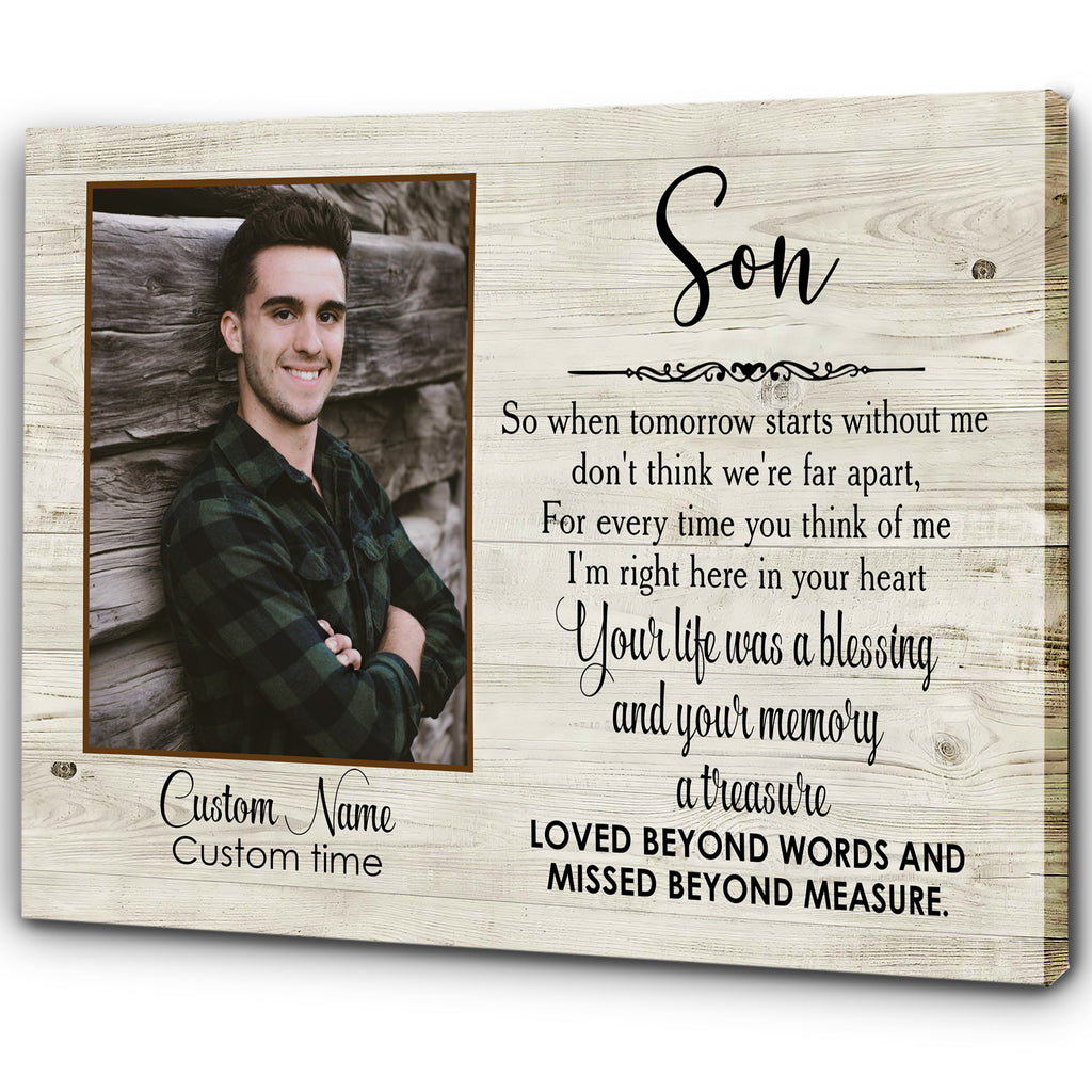 Son Remembrance Canvas | Missed Beyond Measure - In Loving Memory of Beloved Son Memorial Canvas Sympathy Gift for Loss of Son in Heaven Memorial Wall Art | T1130