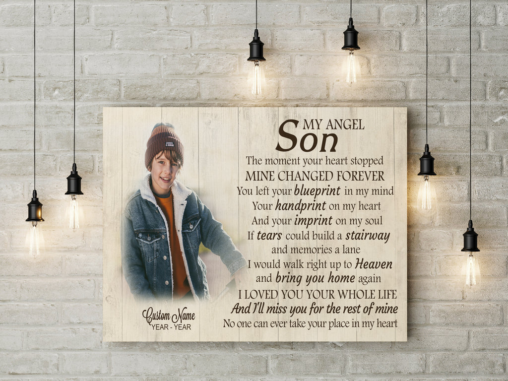Son Remembrance Personalized Canvas| My Angel Son in Heaven| Memorial Gifts, Sympathy Gifts for Loss of Son, Son Bereavement Keepsake, Youth Cancer Condolence Gifts| N2403