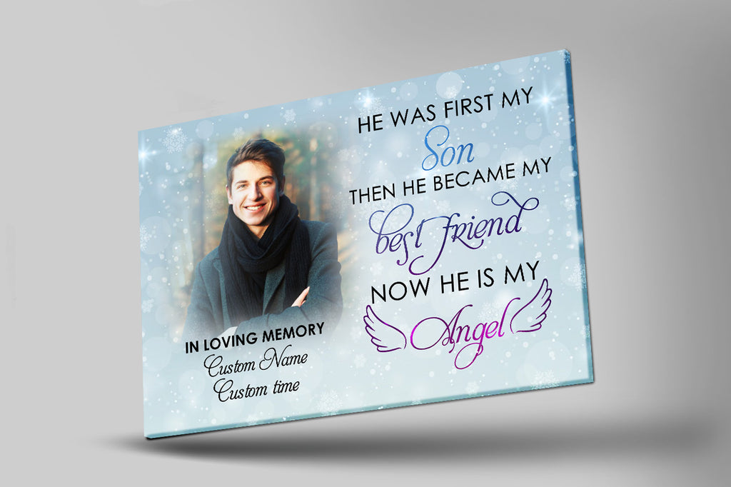 Son Remembrance| Personalized Memorial Canvas| Now He Is My Angel| Memorial Gift for Loss of Son, Loss of a Child| Remembrance Sympathy Gifts| Bereavement Condolence Gifts| N2401