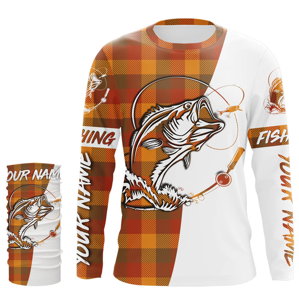 Custom Bass Fishing Fall Orange Plaid Fishing Shirts, Christmas Thanksgiving Fishing gifts - IPHW1858