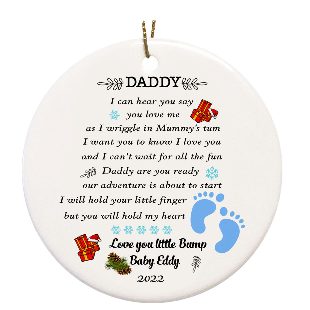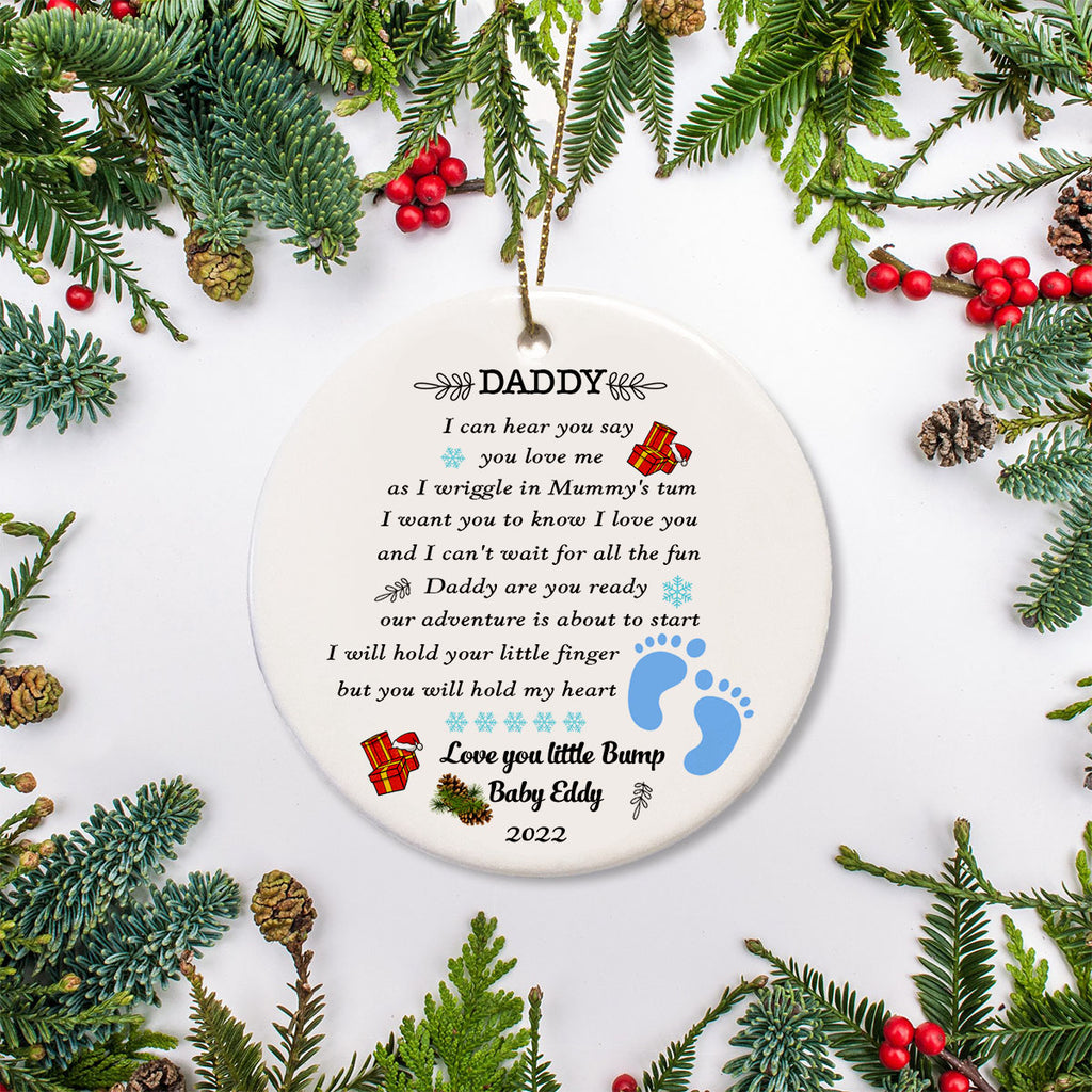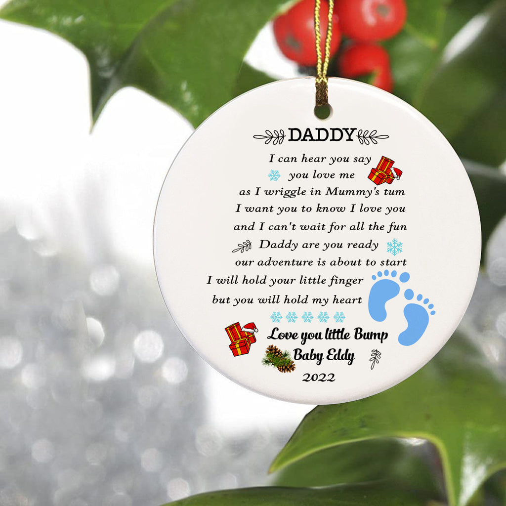 Daddy Ornament Love Message from Baby Bump - Custom Ornament| Dad To Be Gift New Dad Gift Pregnancy Announcement Baby Reveal Ornament on Christmas New Baby Christmas Ornament| JOR09