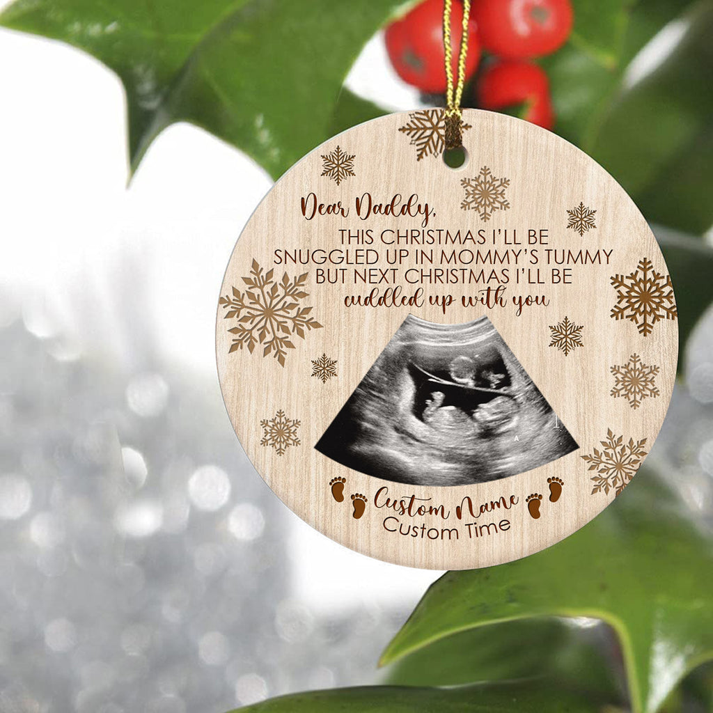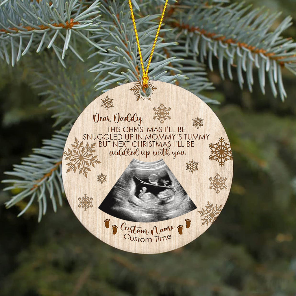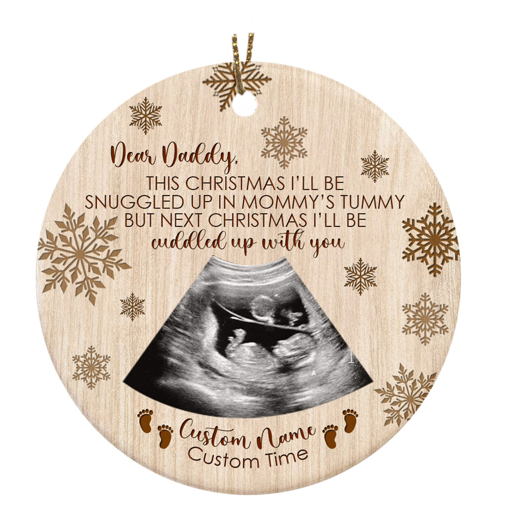 Dear Daddy from Baby Bump Christmas Ornament - Custom Baby Ultrasound Photo Ornament| Dad To Be Gift Pregnancy Announcement New Dad Gift Baby Reveal Ornament on Christmas| JOR08