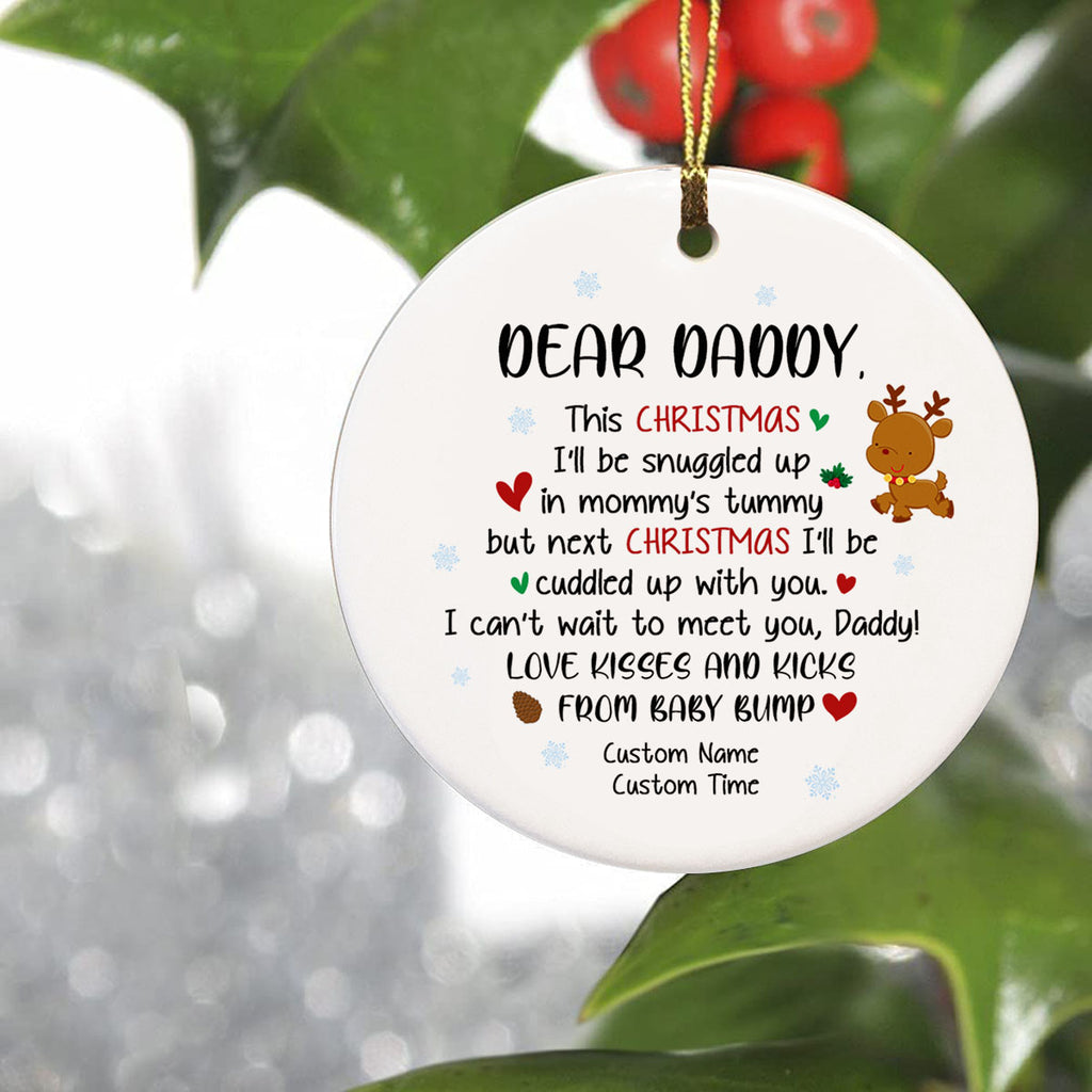 Dear Daddy from Baby Bump Christmas Ornament - Custom Ornament Gift for New Dad, Dad To Be, Expecting Father on Christmas| Baby Shower Gift Baby Reveal Pregnancy Announcement Ornament| JOR07