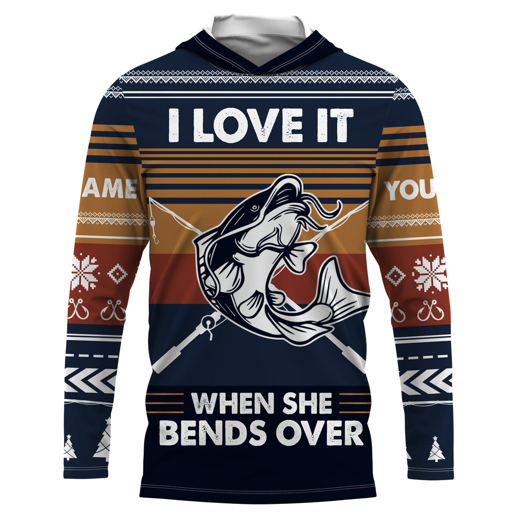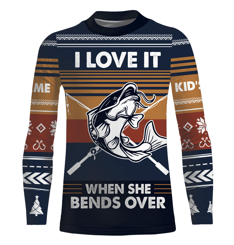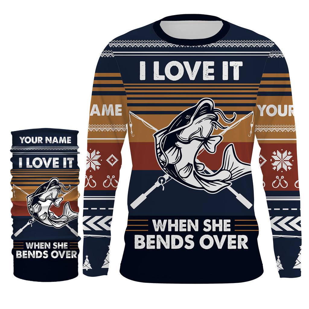 I love it when she bends over Catfish Custom Ugly Sweater pattern Long Sleeve Fishing Shirts, Catfish Fishing Christmas gifts - IPHW1877