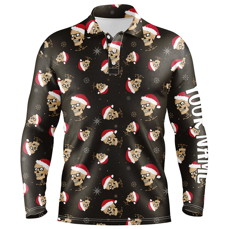Santa Skull Golf Mens Polo Shirts Custom Name Christmas Golf Shirts For Men Funny Golf Gifts LDT0830