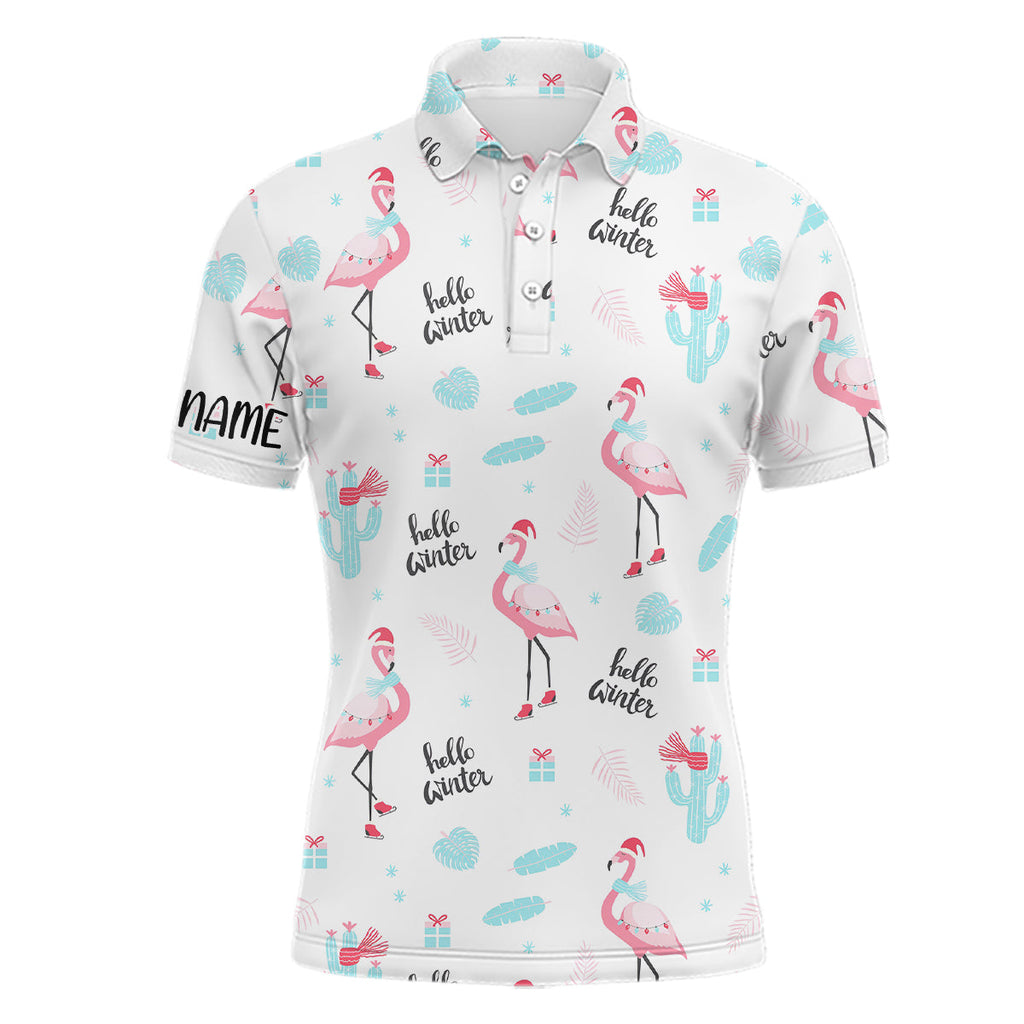 Winter Flamingo Christmas Golf Polo Shirts Mens Funny Golf Tops Best Golf Gifts For Male LDT0929