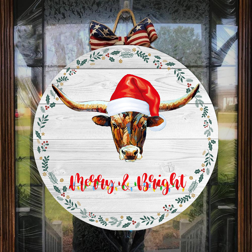 Longhorn Merry Christmas Y'all door hanger, wood hanging, wooden home signs TAWD5
