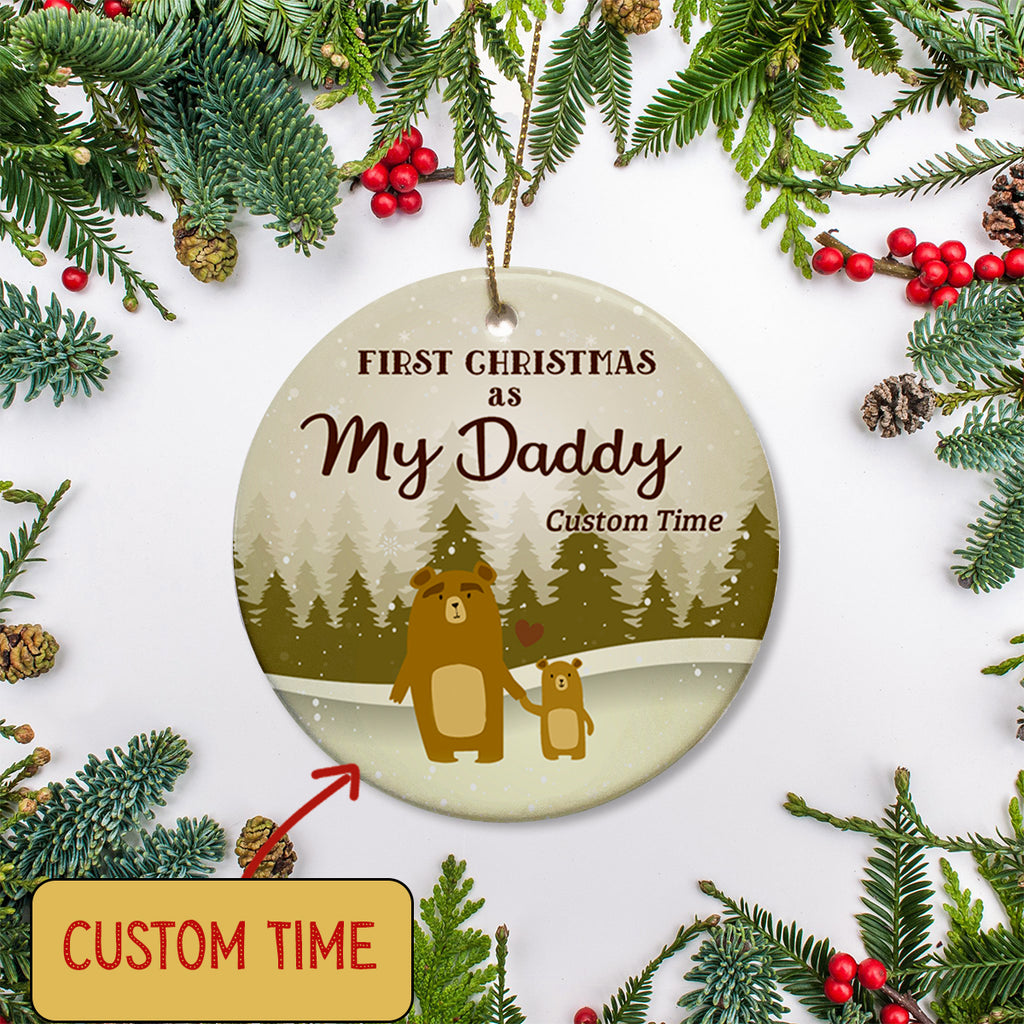 New Dad Christmas Ornament - Custom First Christmas As My Daddy - Brown Bear Ornament from Baby| Dad To Be Gift Baby Reveal Pregnancy Announcement Ornament for Dad on Christmas| JOR13
