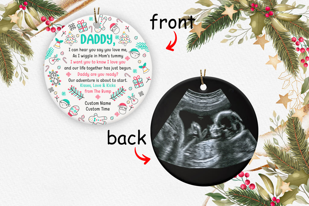 New Dad Ornament - Custom Sonogram of Baby Bump Ornament 2 Sided Circle Ornament Christmas Present for Daddy To Be Expecting Father Pregnancy Reveal New Baby Christmas Ornament - JOR51