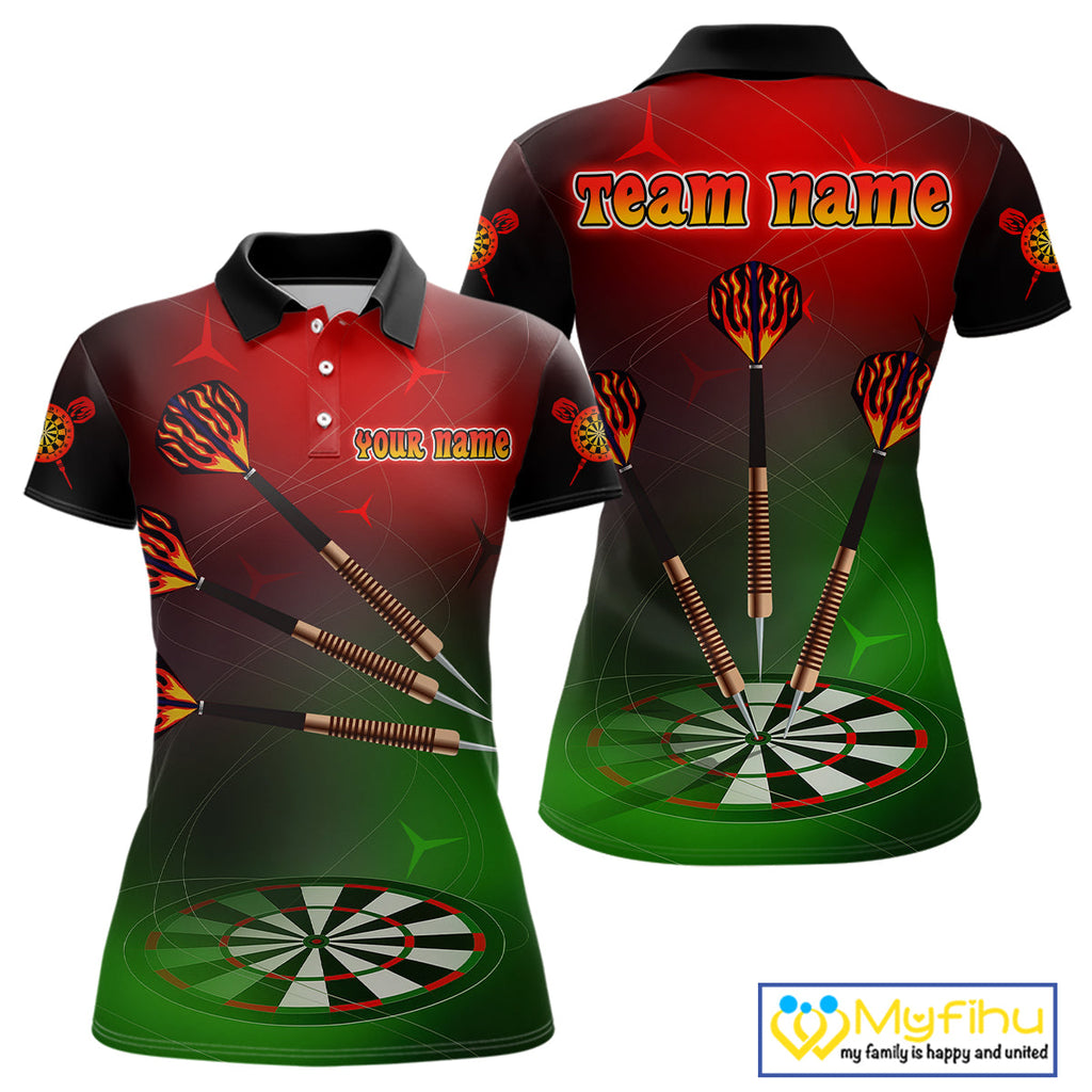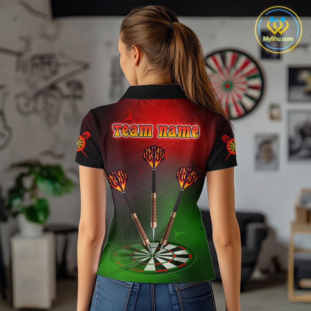 Custom Green And Red Dart Team Polo Shirts For Women, Christmas Dart Outfit NYN0260