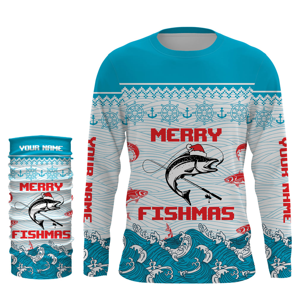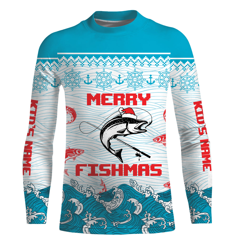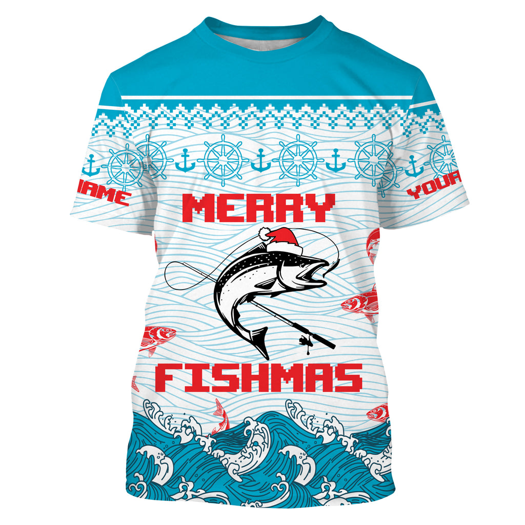 Salmon Fishing Funny Merry Fishmas Christmas pattern Fishing Shirts, Christmas Fishing gifts - TTN17