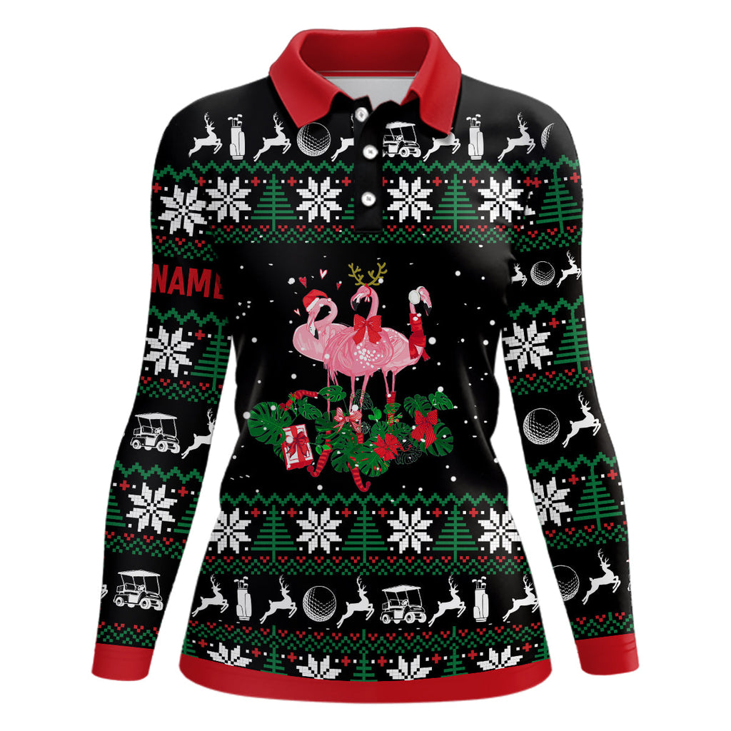 Christmas Flamingo Womens Golf Polo Shirt Custom Golf Gifts For Women Personalized Golf Tops LDT1043