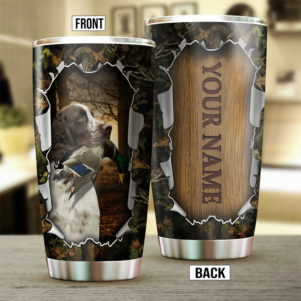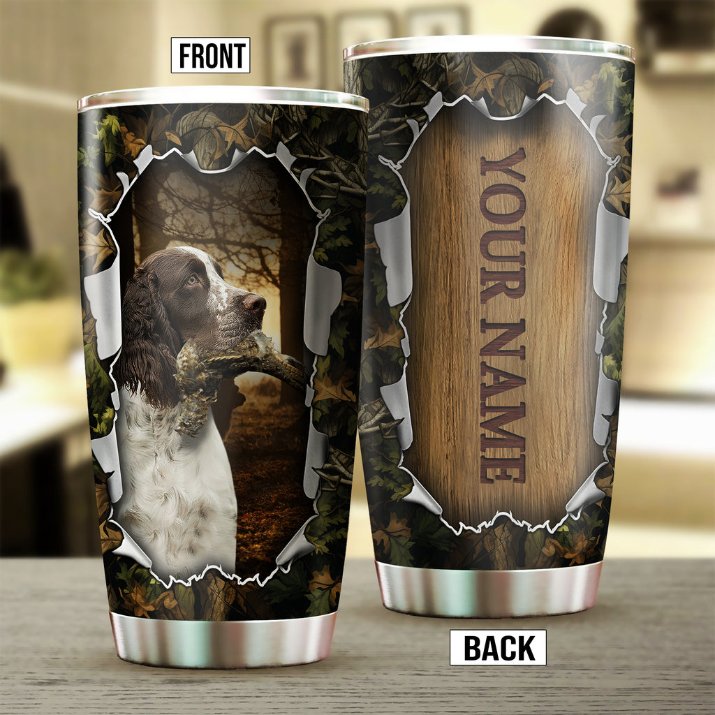 English Springer Spaniel Bird Hunting Dog Custom Name Stainless steel Tumbler Cup FSD4465