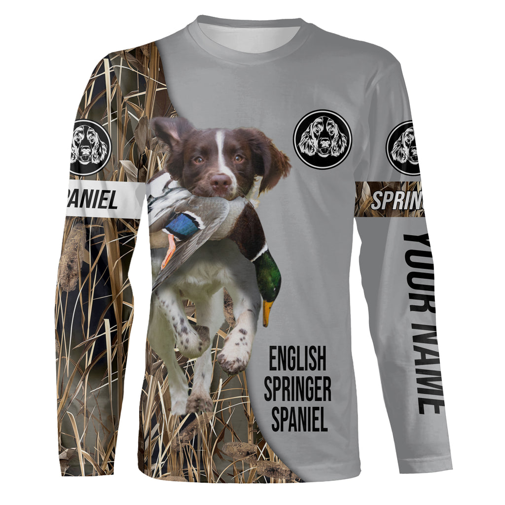 English Springer Spaniel Duck Hunting with Dog Custom Name Waterfowl Camo Shirts for Duck Hunter FSD4486