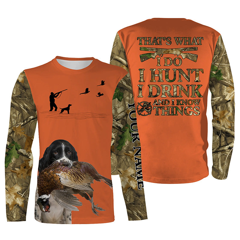 "I hunt I drink and I know things" orange hunting Shirts with English Springer Spaniel dog FSD4049