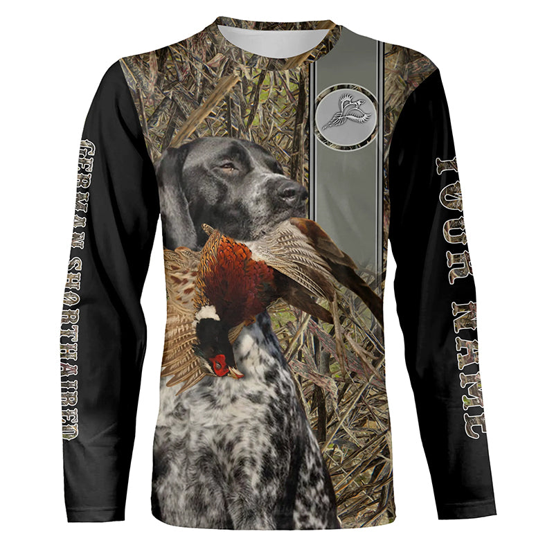 Black roan GSP German Shorthaired Pointer Hunting Pheasant Camo Custom Name All Over Printed Hoodie, Long sleeve Shirt FSD2885