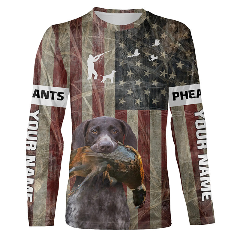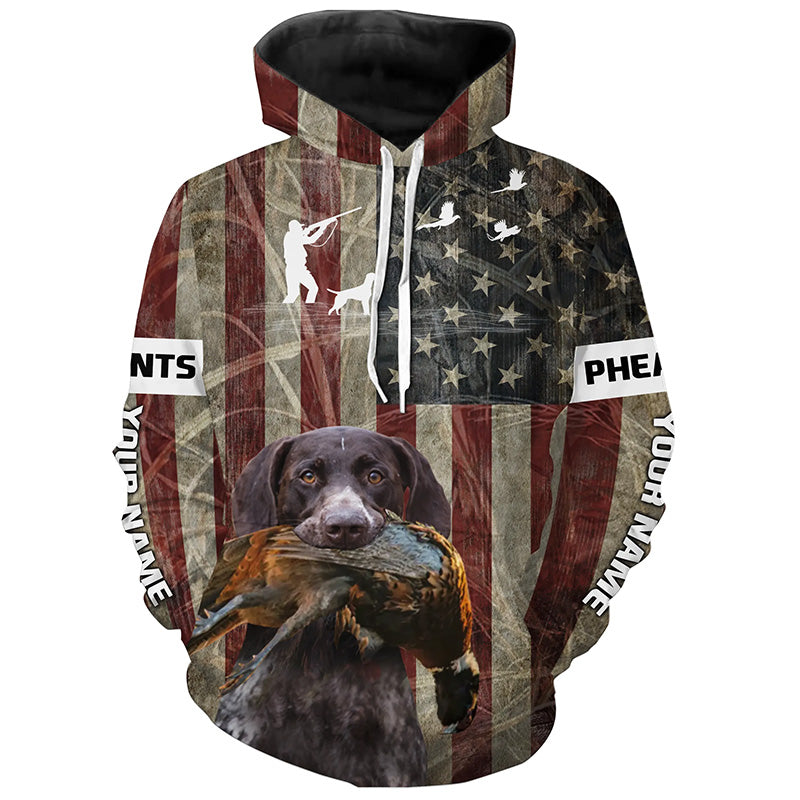 German Shorthaired Pointer dog Pheasant hunting Patriotic American flag custom Name all over print Shirts FSD4104