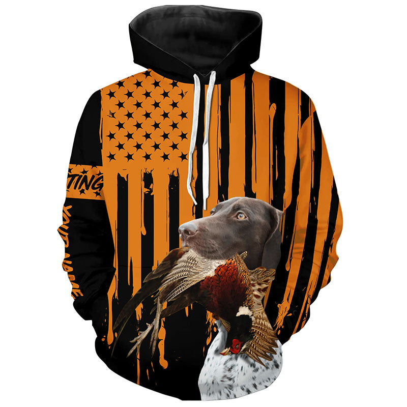 German Shorthaired Pointer Pheasant Hunting Dog Orange American flag Customized  Name Shirts FSD4473