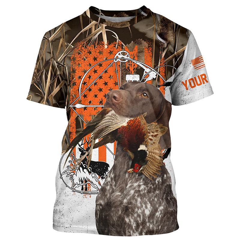Liver roan German Shorthaired Pointer Hunting Dog American flag Custom Name all over print Shirts FSD4441
