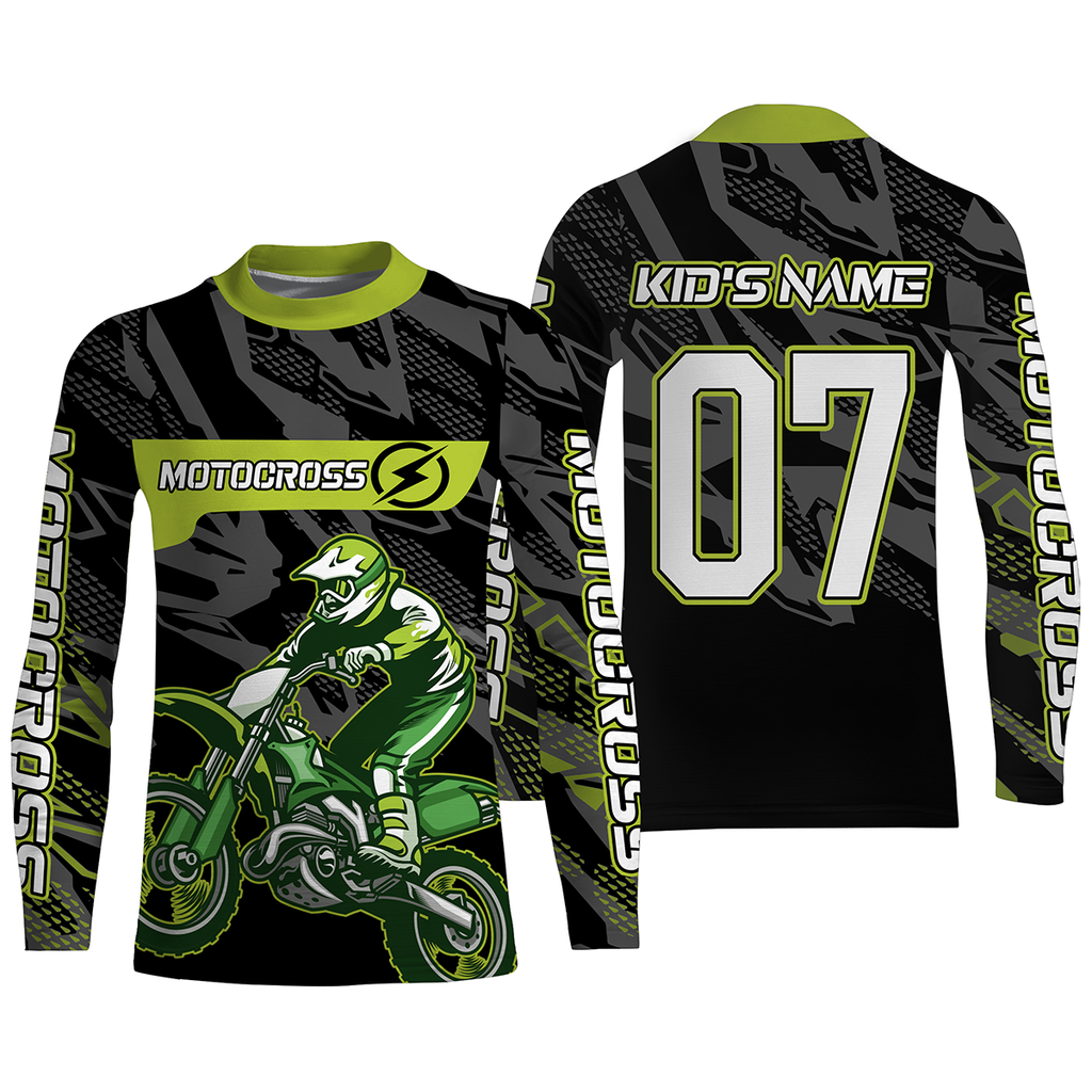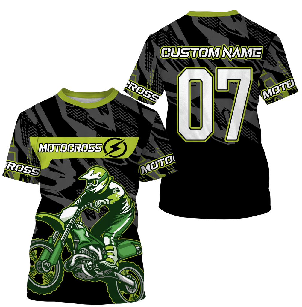 Camo Motocross Personalized Jersey UPF30+ UV Protect, Green Dirt Bike Racing Off-road Riders Racewear| NMS447