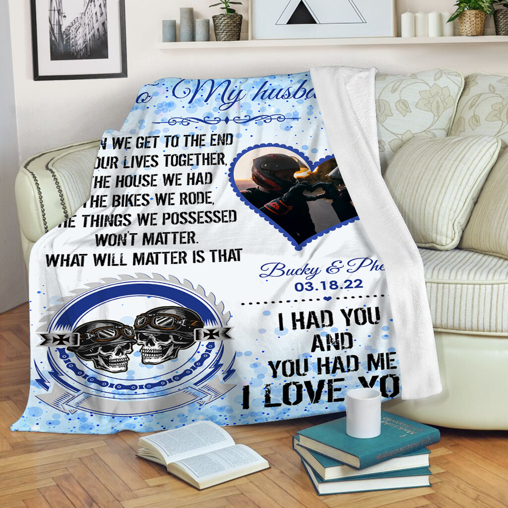 Customized Biker Husband Blanket| I Had You  and You Had Me Biker Motorcycle Blanket|  Blanket from Wife for Husband on Birthday,  Valentine’s Blanket, Anniversary Day BP51 Myfihu